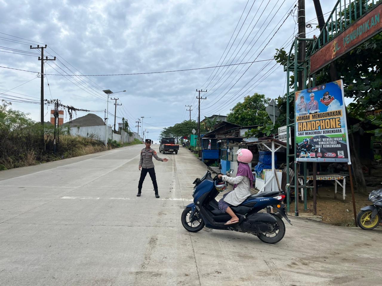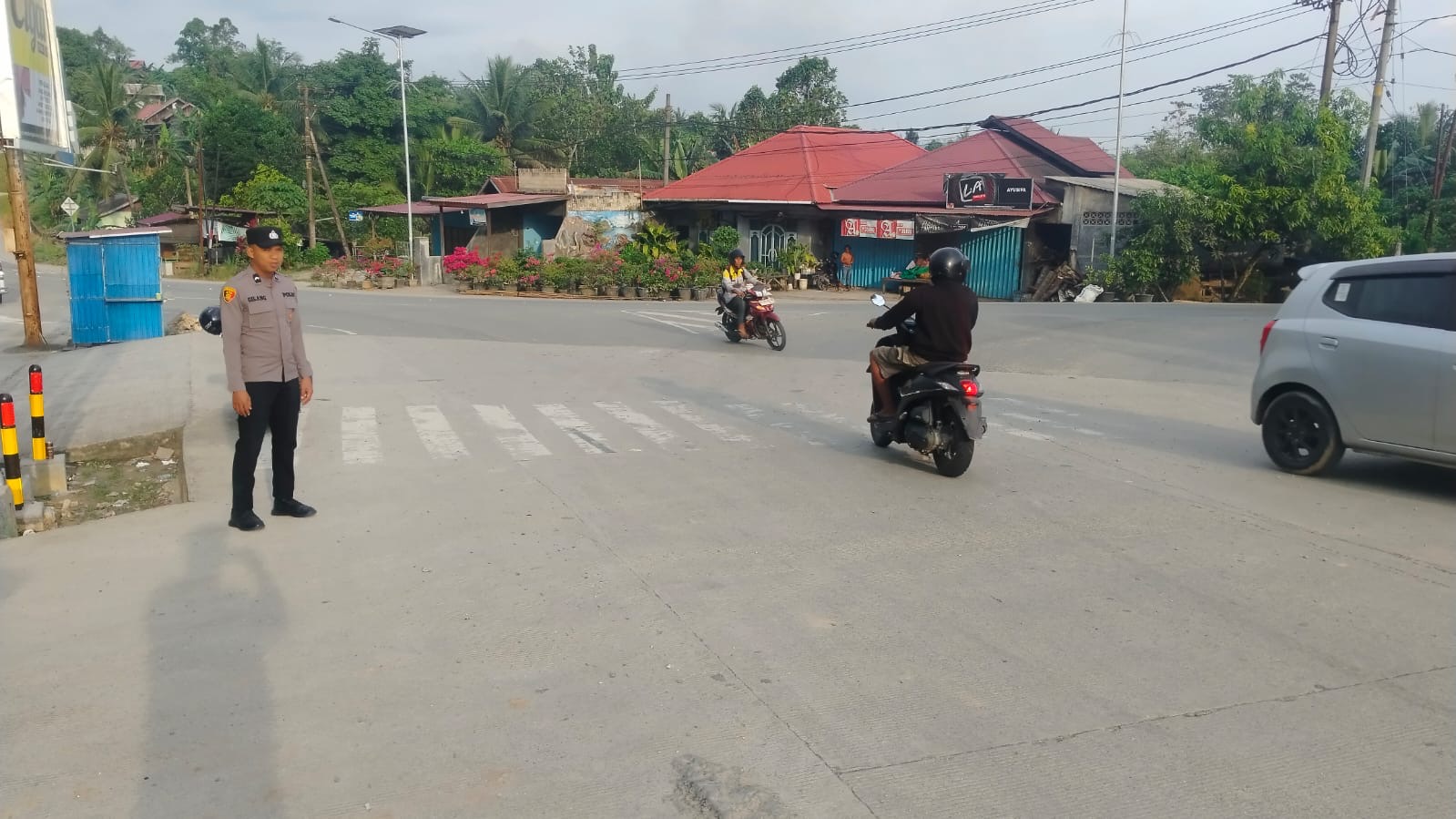 Personel Polsek Teluk Pandan Laksanakan Pengaturan Lalu Lintas Pagi Hari