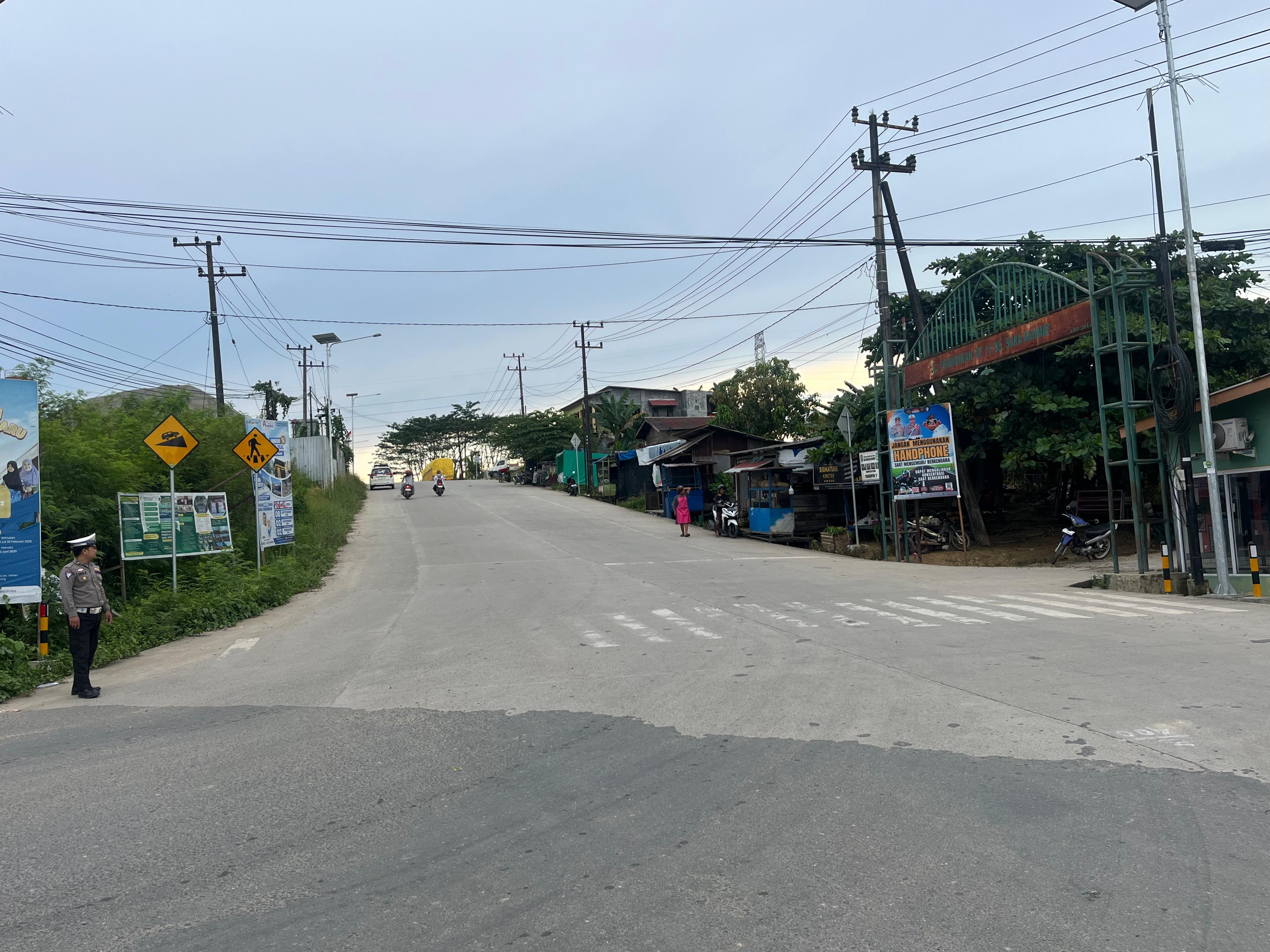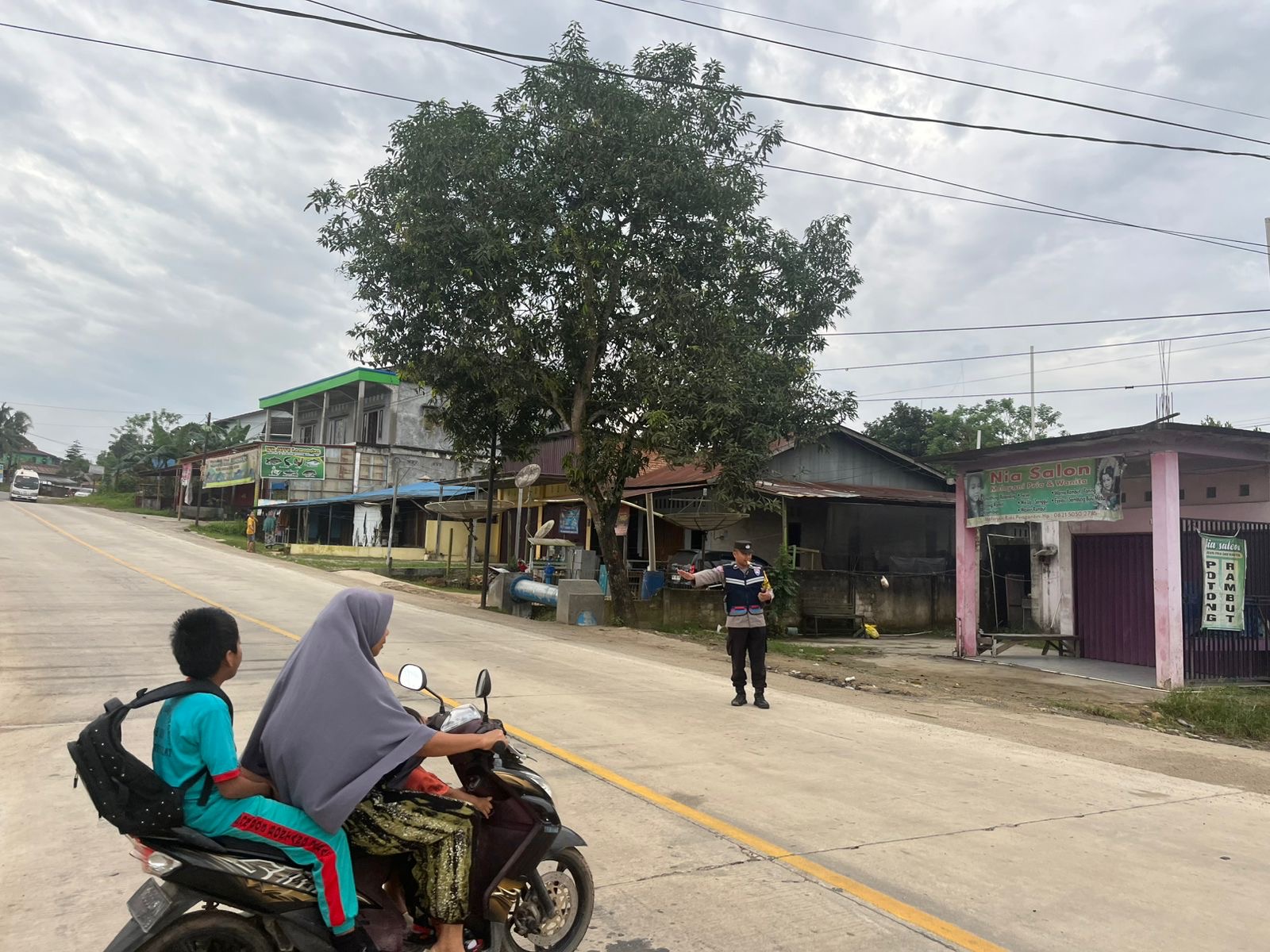 Personel Polsek Teluk Pandan Laksanakan Pengaturan Lalu Lintas Pagi Hari