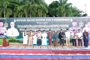 Tribratanews.kaltim.polri.go.id, Balikpapan – Kepala Kepolisian Daerah Kalimantan Timur, Irjen Pol Endar Priantoro, S.H., S.I.K., C.F.E., M.H., didampingi Wakapolda Kaltim Brigjen Pol. Andrianto Jossy Kusumo, S.H., M.Han., para Pejabat Utama (PJU) Polda Kaltim melaksanakan Sholat Idulfitri 1447 Hijriah bersama personel Polda Kaltim dan masyarakat di Lapangan Mapolda Kaltim, Sabtu (21/3/2026).