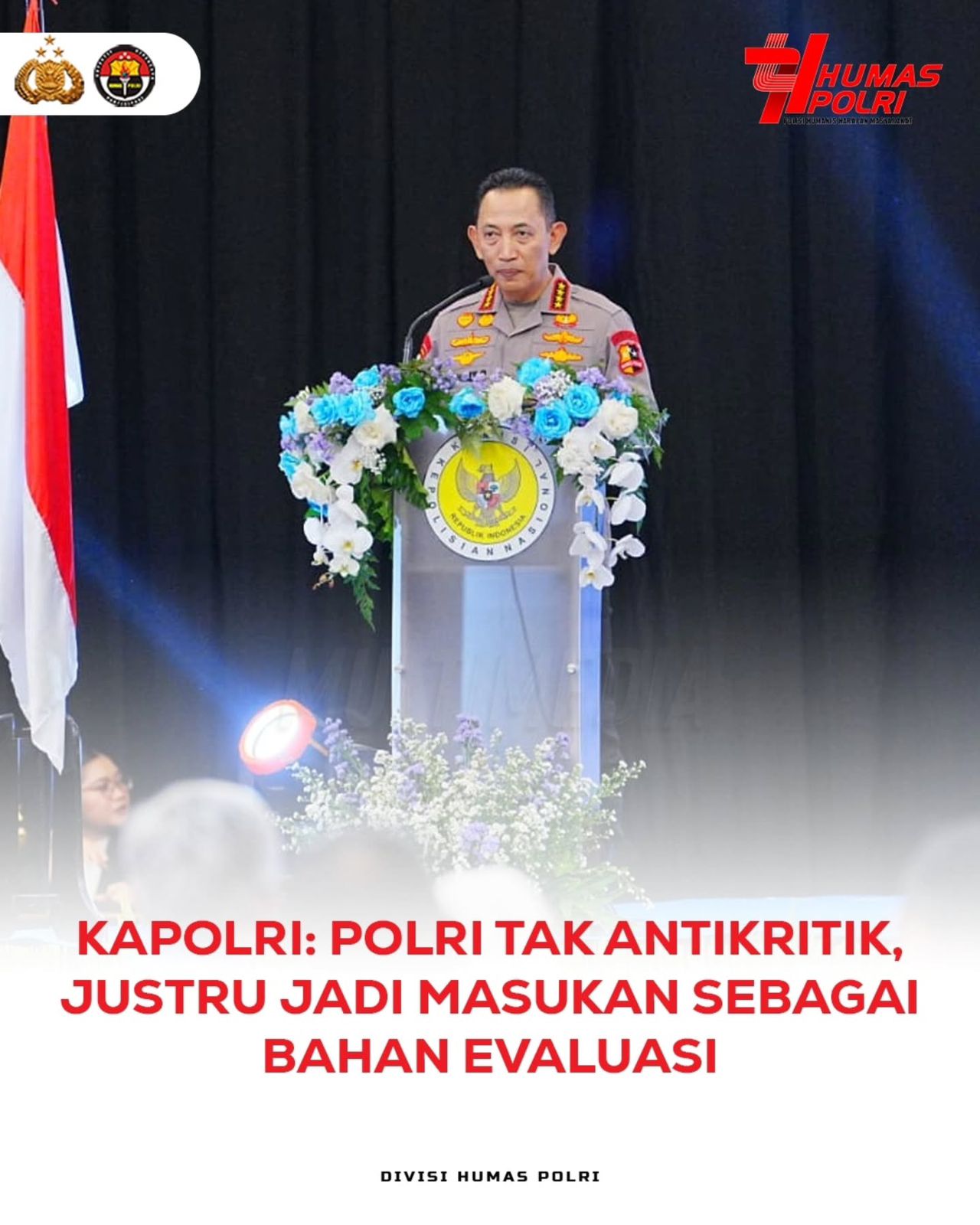 Kapolri Jenderal Polisi Drs. Listyo Sigit Prabowo, M.Si., menegaskan bahwa Polri bukanlah institusi antikritik. Menurutnya setiap saran, masukan dan kritik dari masyarakat merupakan bahan berharga untuk terus melakukan pembenahan agar Polri semakin profesional, humanis, dan dicintai rakyat. Hal tersebut disampaikan Kapolri saat sambutan dan penyerahan penghargaan dalam acara Kompolnas Award 2025 di Jakarta Pusat, Kamis (16/10). Kepada para penerima penghargaan, Kapolri berpesan agar pencapaian ini bukan hanya dijadikan simbol kebanggaan, melainkan sebagai pemacu semangat untuk terus memperbaiki diri dan menjaga integritas.