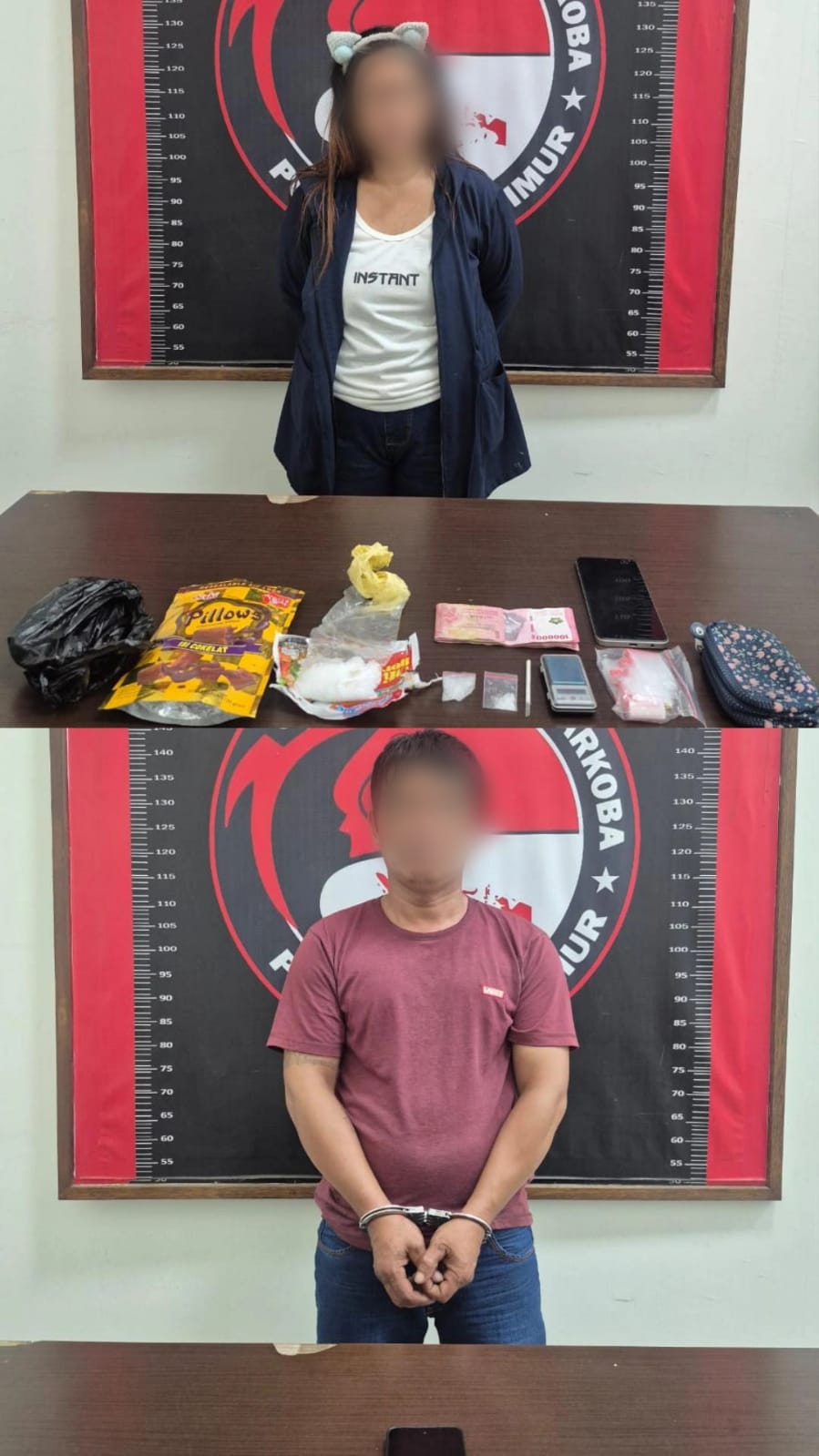 Setelah melakukan pemantauan intensif selama berapa hari, petugas berhasil mengidentifikasi tersangka berinisial J Als M. M (39) seorang wanita dan A. S als P (38) seorang laki- laki yang diduga terlibat dalam jaringan peredaran narkoba. Dalam upaya penangkapan, petugas melakukan penggerebekan di JL. Kilo 3 Cafe Lilis RT 08 Desa. Pengadan Kec. Karangan Kab.kutim.