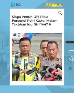 Polri mengerahkan 317.666 personel untuk mengamankan malam takbiran Idulfitri 1447 Hijriah yang tergabung dalam Operasi Ketupat 2026. Selain itu, Polri juga telah menyiapkan sarana pendukung berupa 2.746 pos operasi yang terdiri dari 1.624 pos pengamanan, 779 pos pelayanan, dan 343 pos terpadu yang tersebar di berbagai titik strategis.