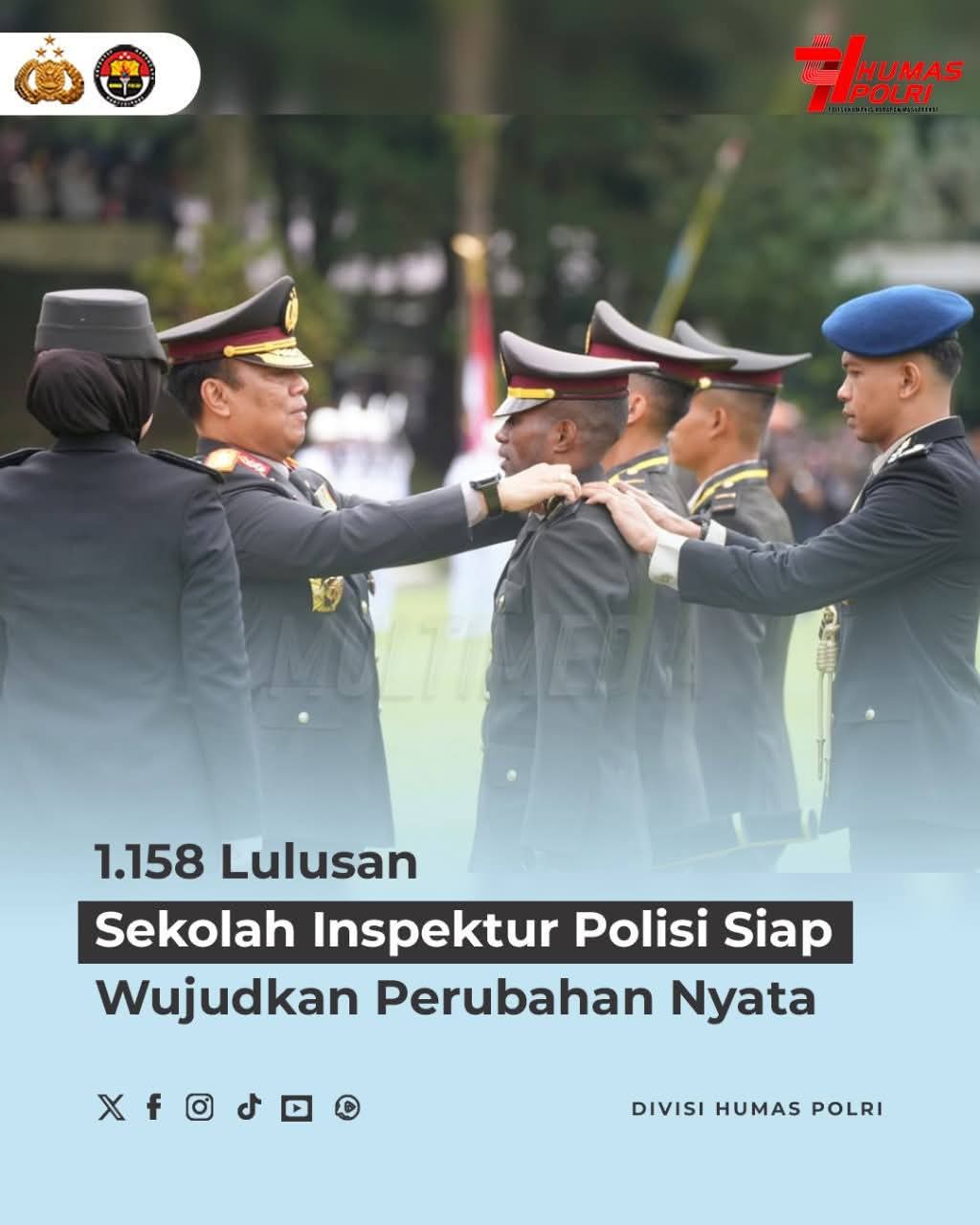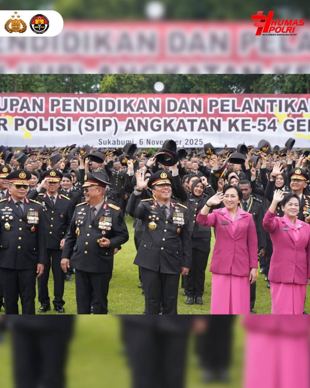 Sebanyak 1.158 perwira Polri resmi dilantik sebagai lulusan Sekolah Inspektur Polisi (SIP) Angkatan ke-54 Gelombang II Tahun Anggaran 2025 di Setukpa Lemdiklat Polri, Sukabumi, Jawa Barat, Kamis (6/11). Upacara dipimpin Wakapolri Komjen Pol. Prof. Dr. Dedi Prasetyo, S.H., M.Hum., M.Si., M.M., yang menegaskan pentingnya para perwira baru menunjukkan perubahan nyata di lapangan. Wakapolri menekankan agar lulusan SIP menjadi pengendali di lapangan yang mampu membimbing anggota dan memastikan pelayanan publik berjalan dengan baik. Para perwira juga diingatkan untuk memperkuat fungsi SPKT dan PAMAPTA sebagai garda terdepan citra Polri serta menjaga kepercayaan masyarakat di era digital. Polri berharap kehadiran 1.158 perwira baru ini menjadi motor penggerak transformasi menuju pelayanan yang profesional, humanis, dan berintegritas.