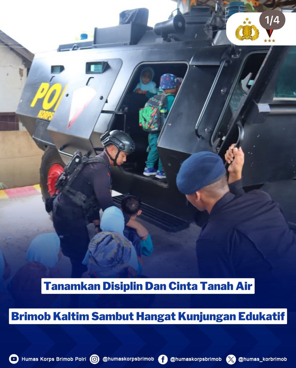Batalyon B Pelopor bersama Subden Komposit Gegana, yang memberikan pengenalan tentang tugas-tugas Brimob serta memperlihatkan berbagai perlengkapan dan kendaraan taktis yang digunakan dalam operasional kepolisian.