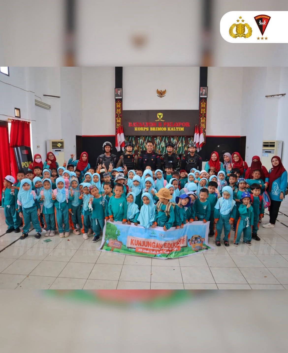SAMARINDA – Suasana ceria dan penuh semangat terlihat di Mako Batalyon B Pelopor Satuan Brimob Polda Kalimantan Timur, ketika puluhan anak-anak dari TK Ukan Hasupa Samarinda melaksanakan kunjungan belajar, Jumat (17/10/2025).