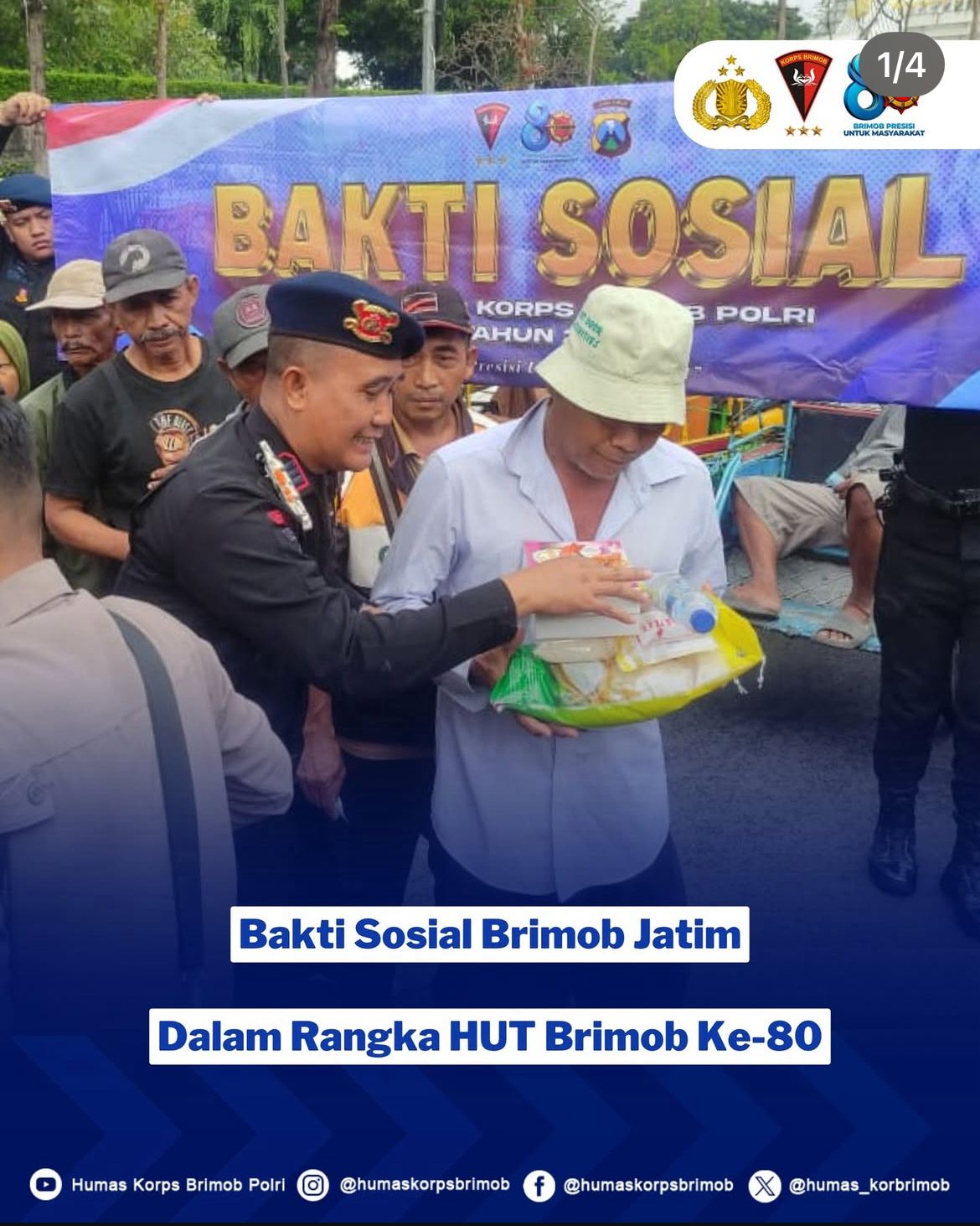 AKP Hartono,S.E. melaksanakan kegiatan Bakti Sosial di lokasi bersejarah Tugu Pahlawan, Surabaya. Kegiatan ini sebagai rangkaian dari HUT ke-80 Korps Brimob Polri. Kegiatan ini menjadi wujud nyata dari komitmen Brimob Polri dalam menjalin kedekatan dan kepedulian terhadap masyarakat. Kehadiran personel Brimob di tengah masyarakat tidak hanya sebagai aparat penegak hukum, namun juga sebagai mitra yang sigap membantu, memperkuat ikatan emosional antara Polri dan warga, khususnya dalam momen spesial peringatan hari jadi Korps Brimob Polri.