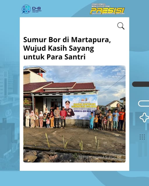 Martapura, OKU Timur – Polri melalui Polda Sumatera Selatan menyalurkan bantuan sumur bor untuk Pondok Pesantren Tahfizh Romadhon serta memberikan dukungan pembangunan Rumah Al-Qur’an Al-Ilmu, sebagai wujud kepedulian terhadap pendidikan keagamaan dan kesejahteraan masyarakat.
