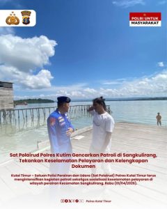 Kutai Timur – Satuan Polisi Perairan dan Udara (Sat Polairud) Polres Kutai Timur terus mengintensifkan kegiatan patroli sekaligus sosialisasi keselamatan pelayaran di wilayah perairan Kecamatan Sangkulirang, Rabu (01/04/2026).