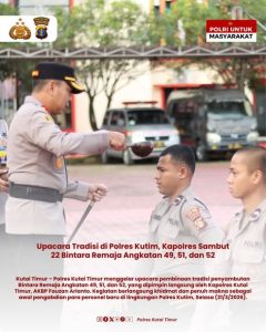 Kutai Timur – Polres Kutai Timur menggelar upacara pembinaan tradisi penyambutan Bintara Remaja Angkatan 49, 51, dan 52, yang dipimpin langsung oleh Kapolres Kutai Timur, AKBP Fauzan Arianto. Kegiatan berlangsung khidmat dan penuh makna sebagai awal pengabdian para personel baru di lingkungan Polres Kutim, Selasa (31/3/2026).